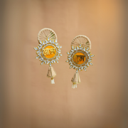 Bring prosperity and positivity to your home with this exquisite Shubh Labh wall hanging. Handcrafted with precision, it features sparkling stone embellishments arranged in a floral pattern around the central Hindi inscriptions – “लाभ” (Labh: Gain) and “शुभ” (Shubh: Auspicious). The design is enhanced with twine-wrapped circular accents, golden bells, and delicate pearl tassels, making it a perfect blend of tradition and elegance.
